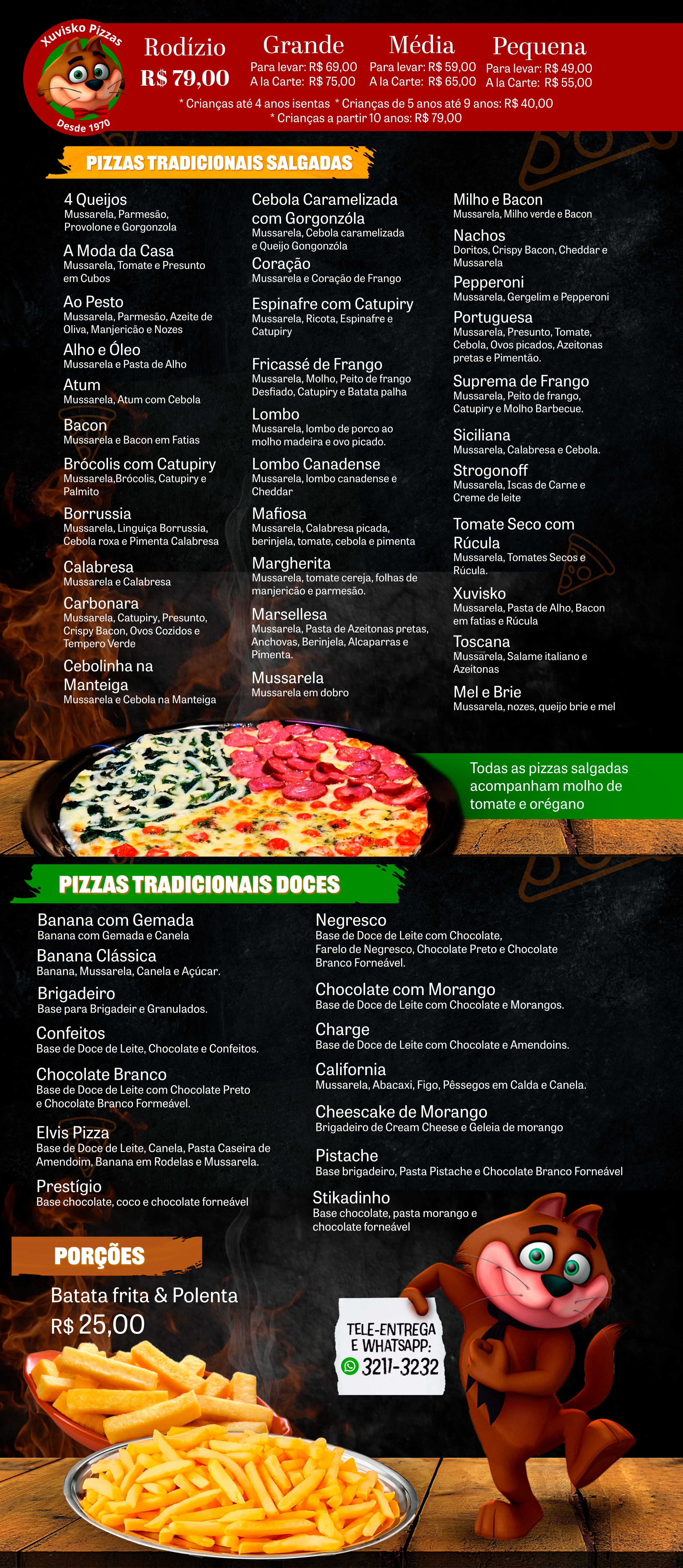 Desde de 1970, a Xuvisko Pizzas vem oferecendo aos seus clientes as mais deliciosas pizzas.